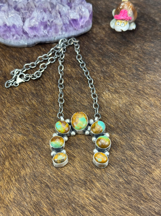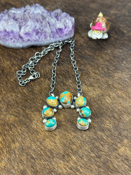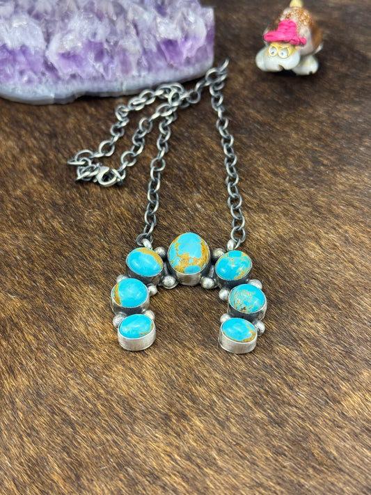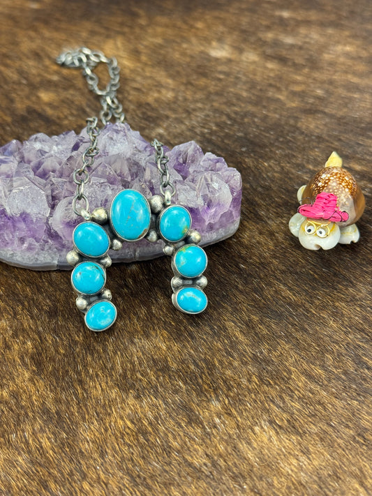 Kingman Turquoise Squash Blossom Necklace