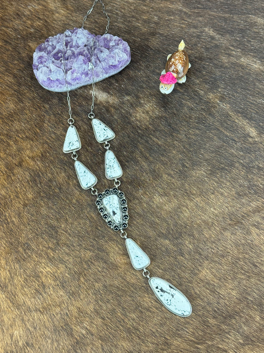 Orange Spiny and Kingman Turquoise Lariat Necklace
