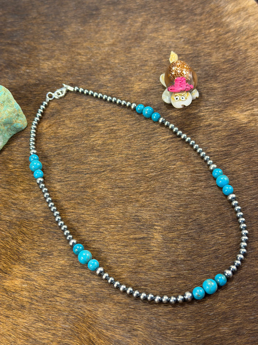 4-8mm Sterling Silver and Turquoise Necklace
