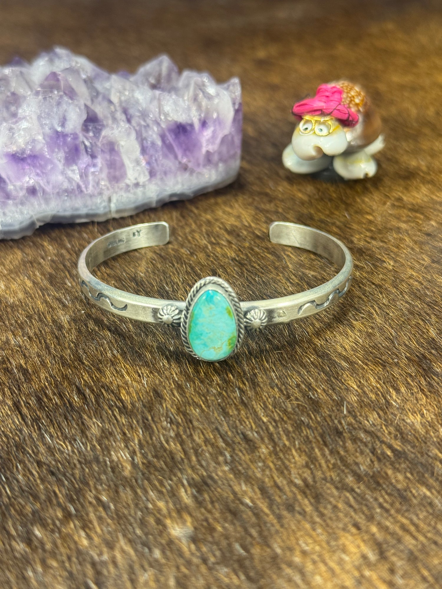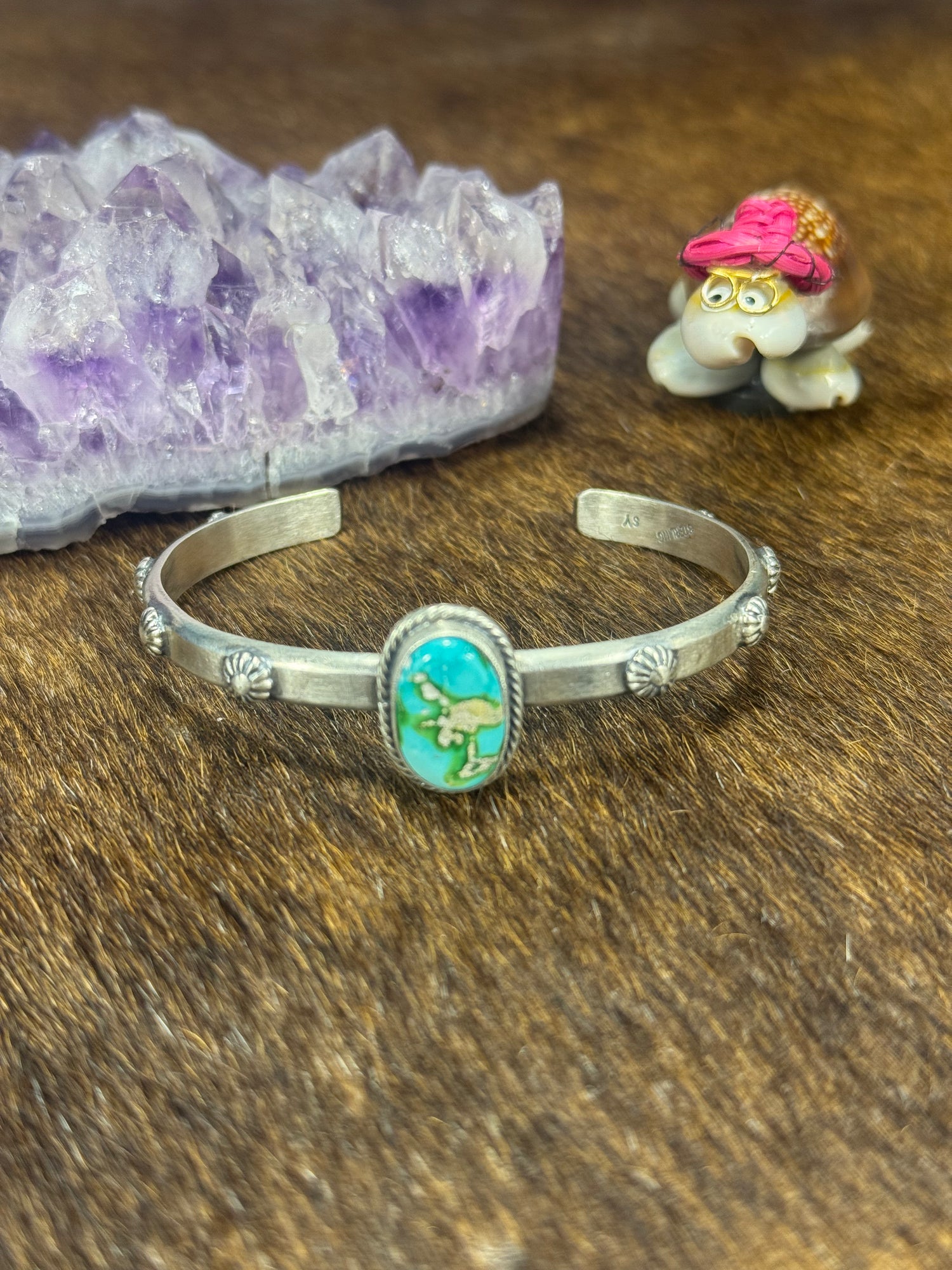 Kingman Turquoise &Sterling Silver Pearl Bracelet