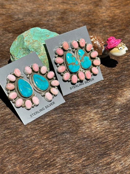 Pink Conch 3 Row Slab Fix Pendant Necklace