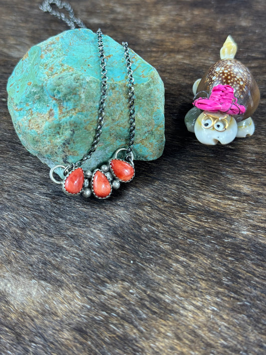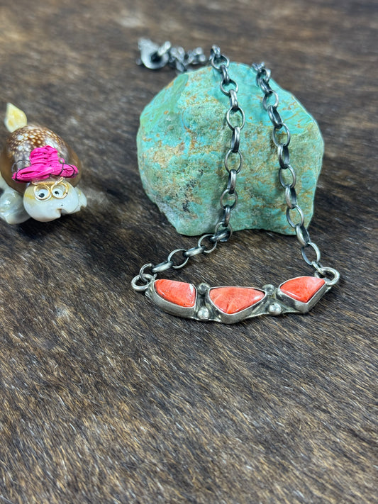 10% OFFRed Spiny 3 Stone Bar Necklace