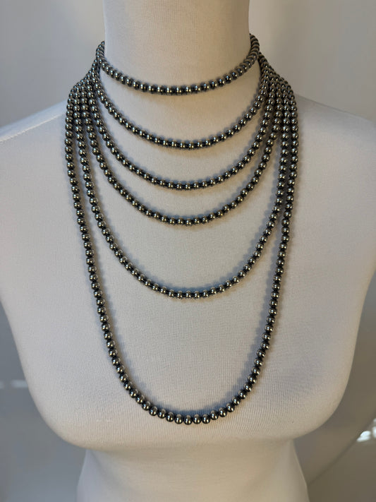 5MM " Navajo Style" Sterling Pearls Necklaces
