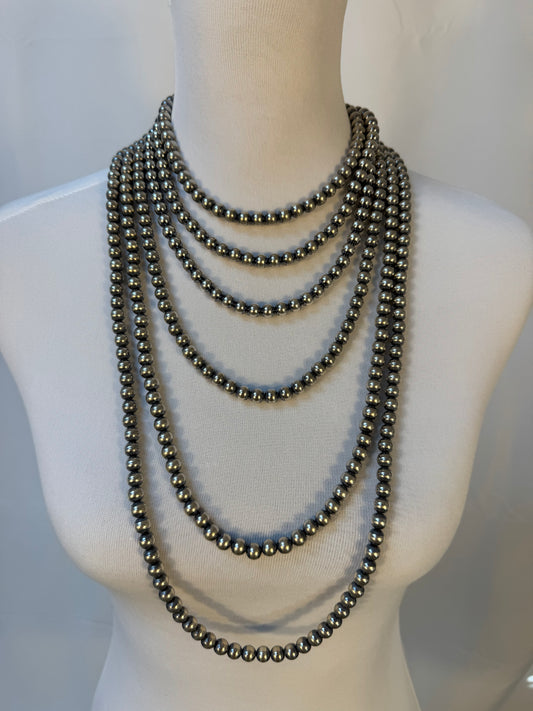 6MM " Navajo Style" Sterling Pearls Necklaces