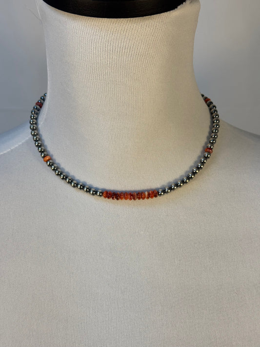 4MM Navajo Style and Red Spiny Pearl Necklace