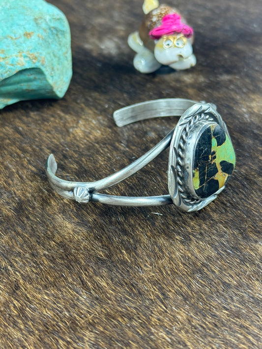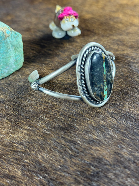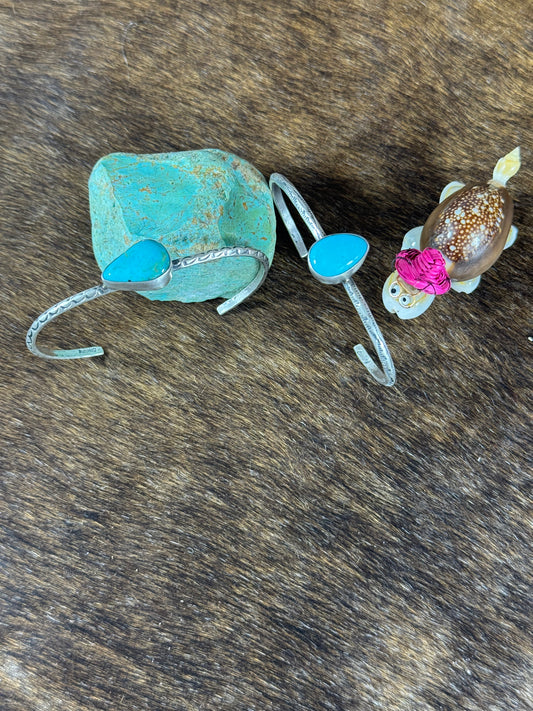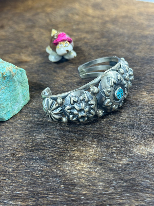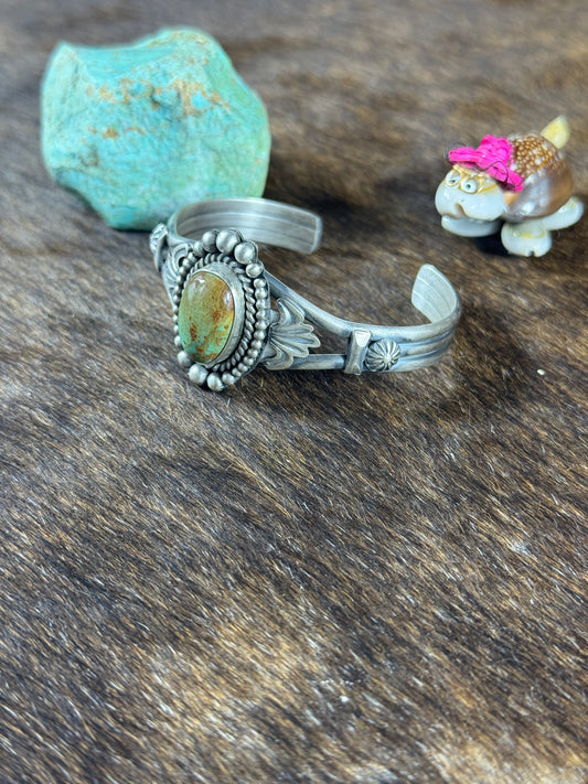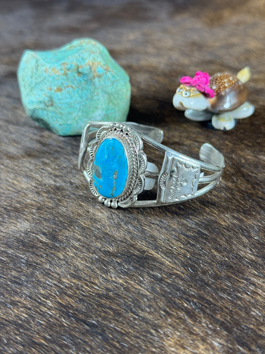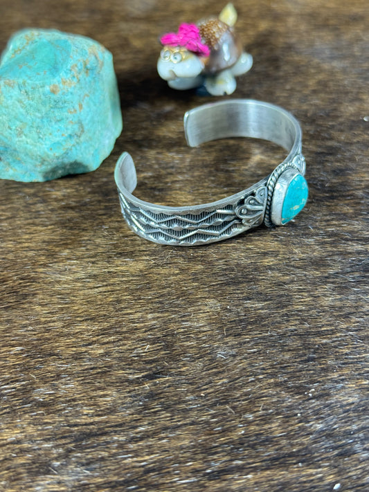 Sterling SIlver Heart Stamp Bracelet and Kingman Center Stone