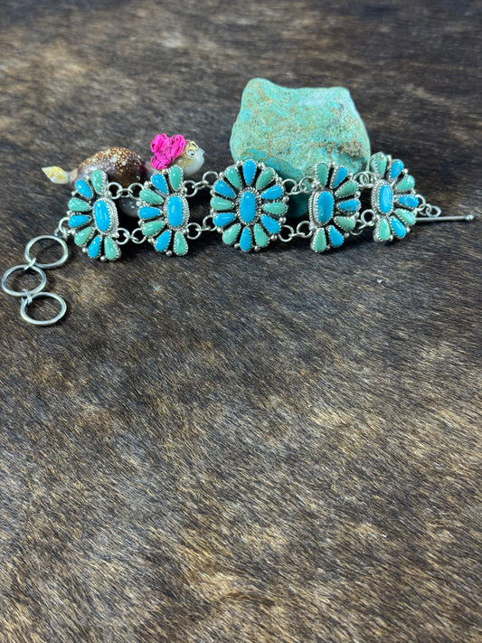 Kingman Turquoise Cluster Link Bracelet
