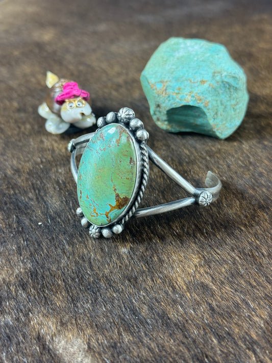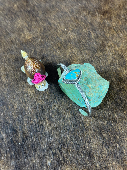 Kingman Turquoise Single Stone Stamp Bracelet