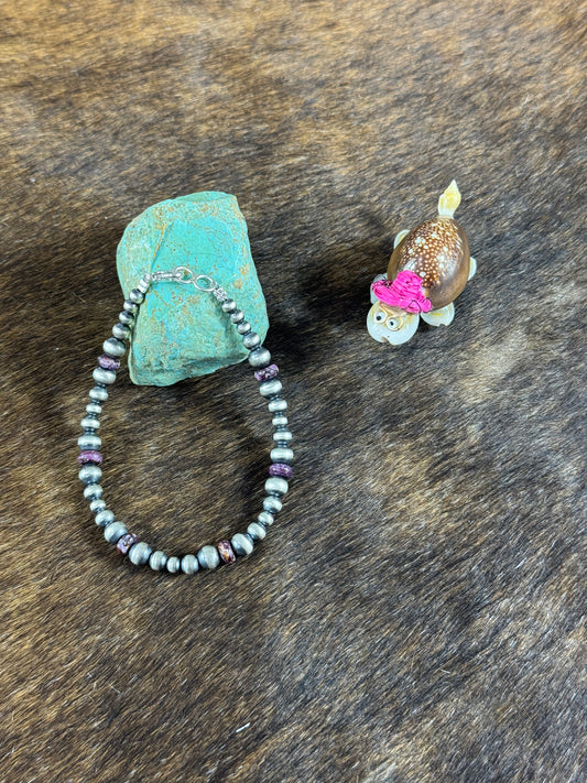 Navajo Style Pearls and Single Stone Bracelet