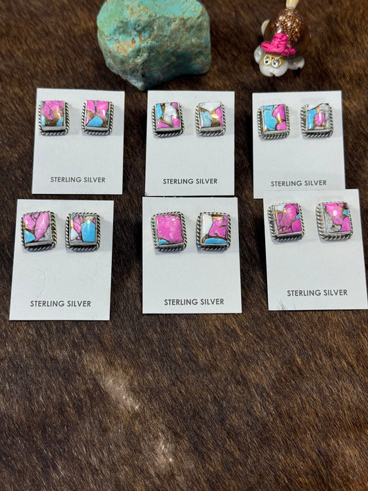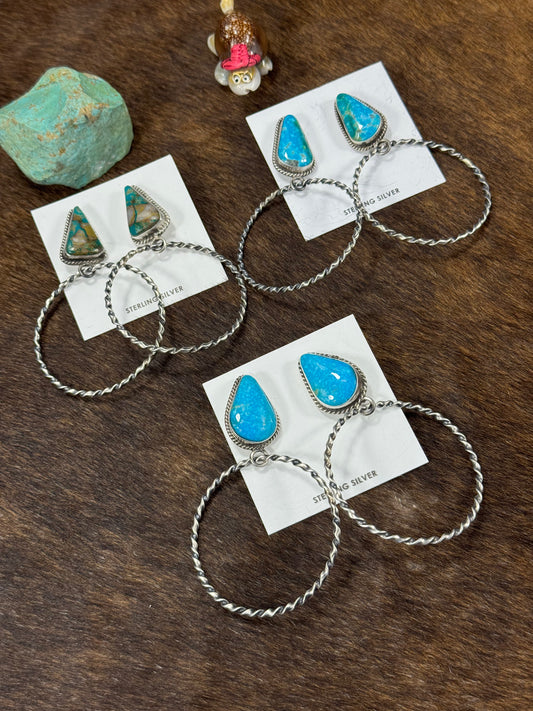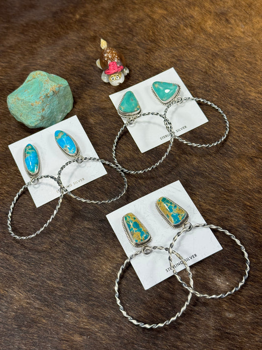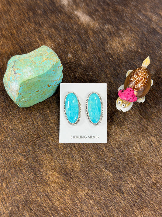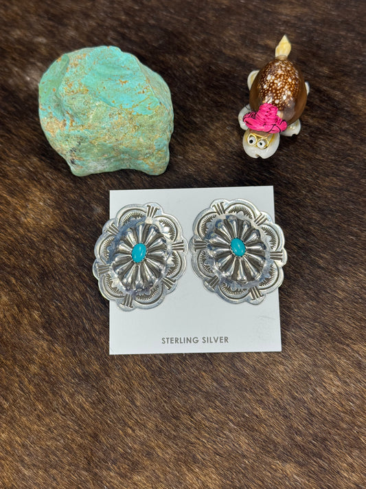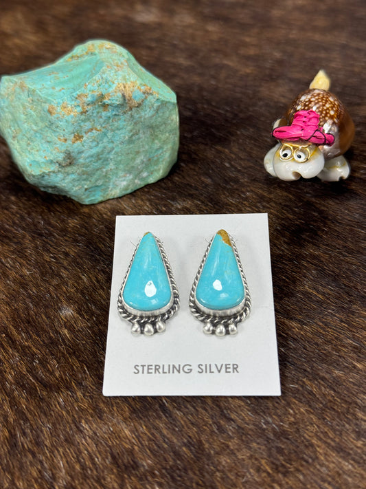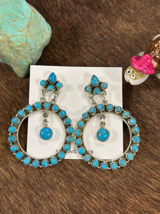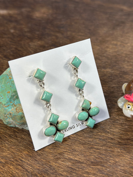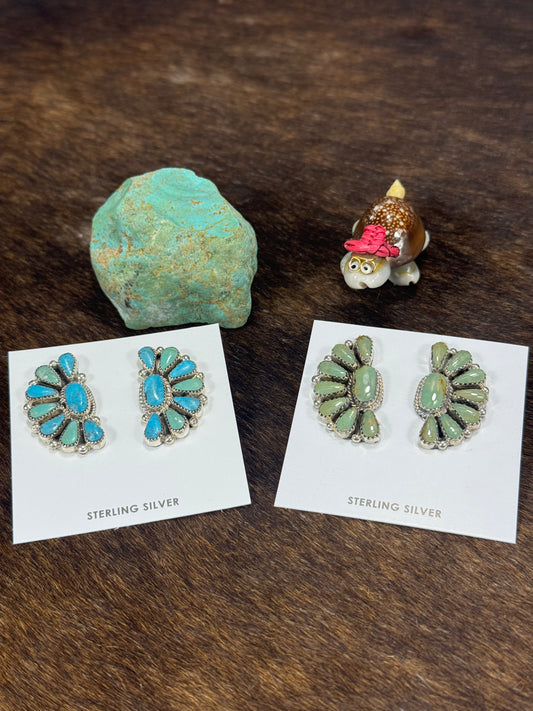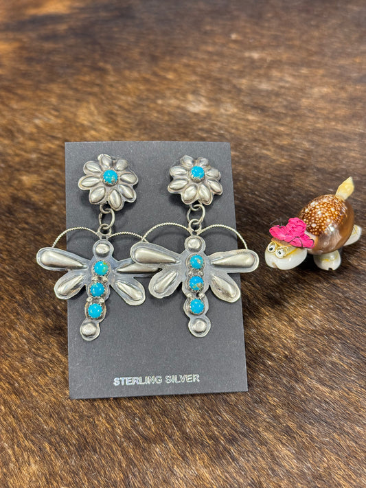 Kingman Turquoise 7 Stone Bow Tie Sterling SilverEarring