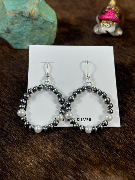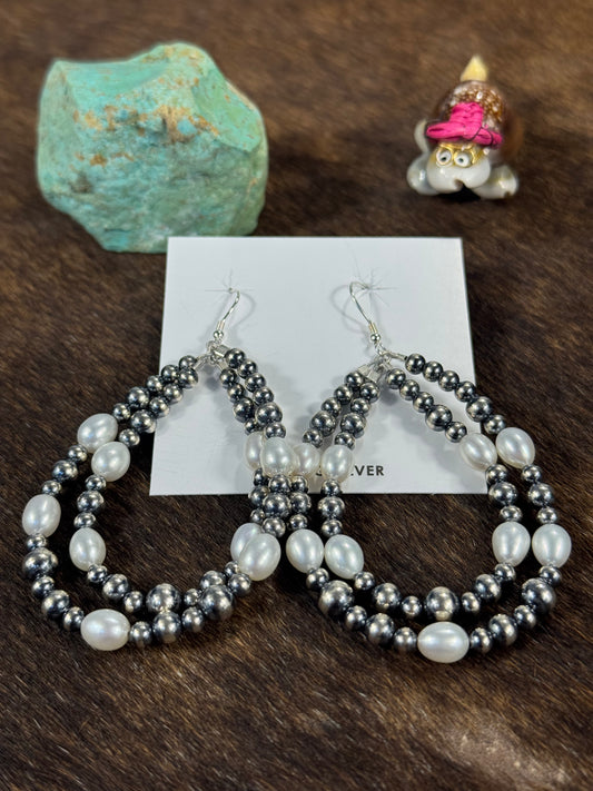 Freshwater Pearl Navajo Style Teardrop Double Earrings