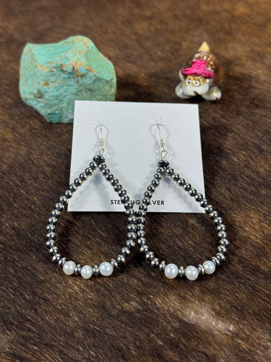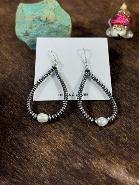 Freshwater Pearl Navajo Style Teardrop Bead Earrings
