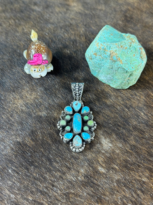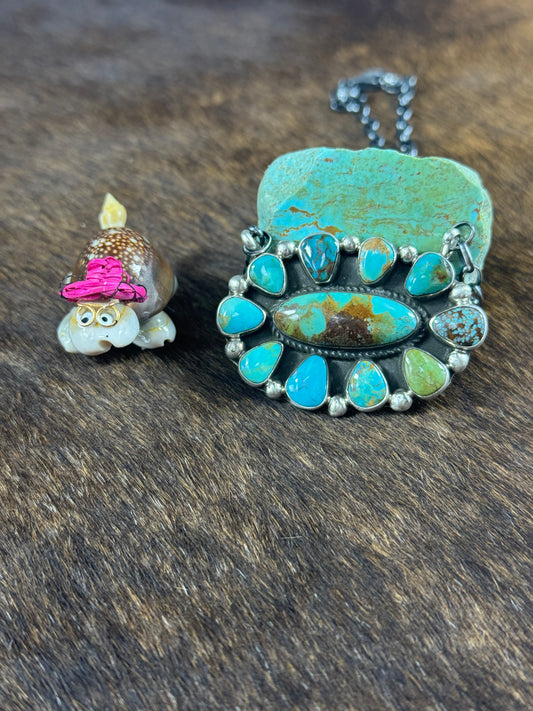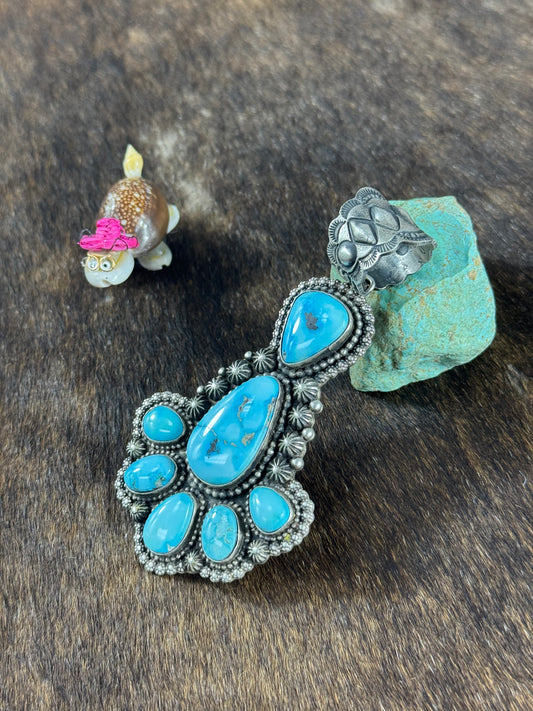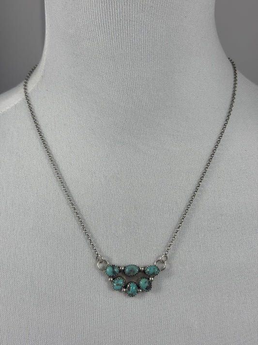 Kingman Turquoise Oval Cluster Fixed Pendant Necklace