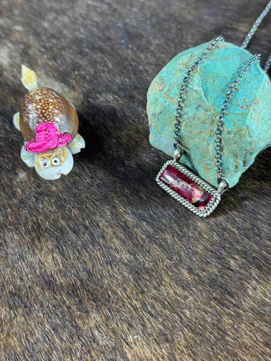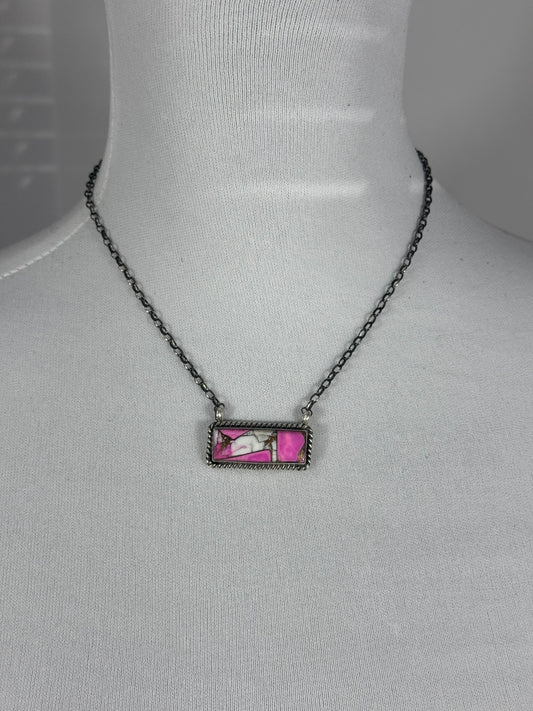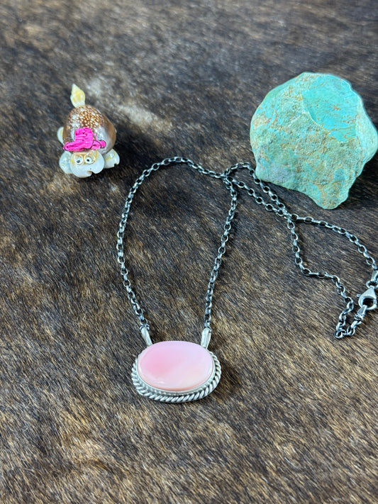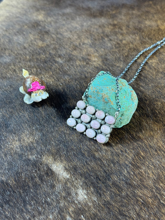 Pink Conch 3 Row Slab Fix Pendant Necklace