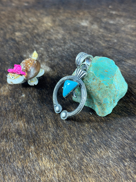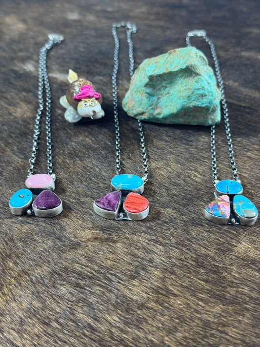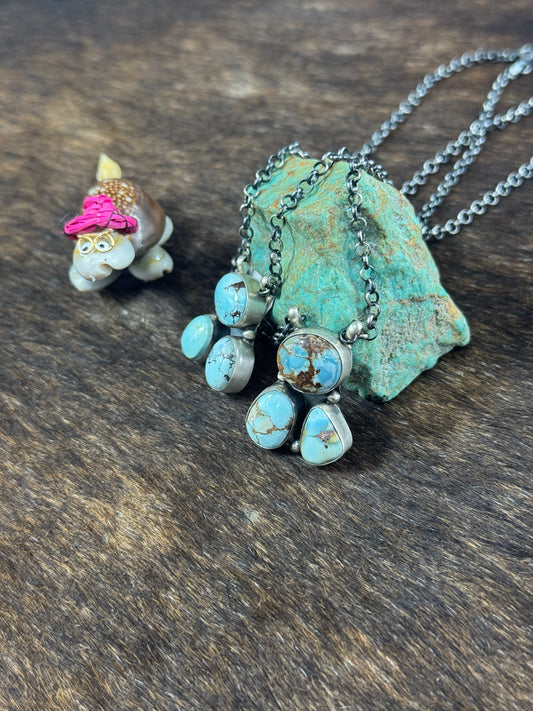 3 Stone 17" Turquoise Fixed Pendent Necklace (Blue)