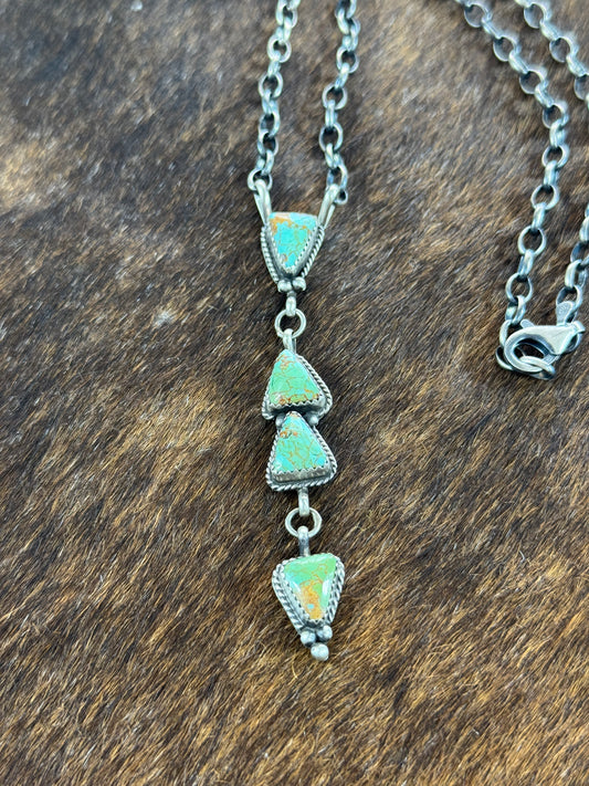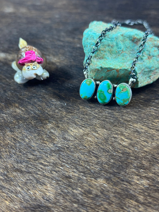 3 Stone 17" Turquoise Fixed Pendent Necklace (Green)