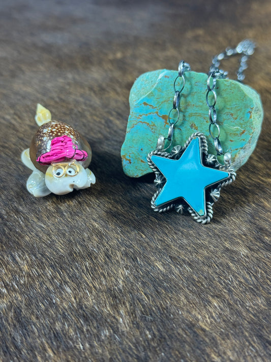 4 Stone 7" Turquoise Fixed Pendent Necklace (Blue)