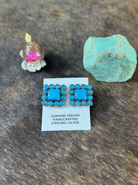 Kingman Turquoise 5 Stone Tear Drop Earrings