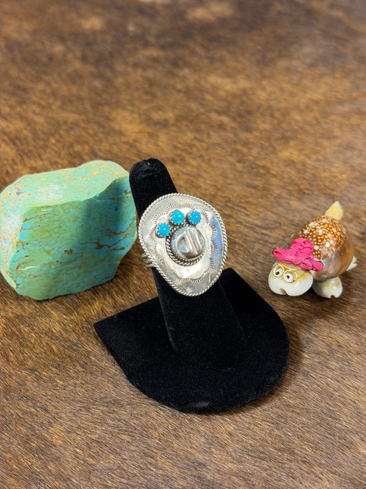 Silver & Kingman Turquoise Cowboy Hat Ring