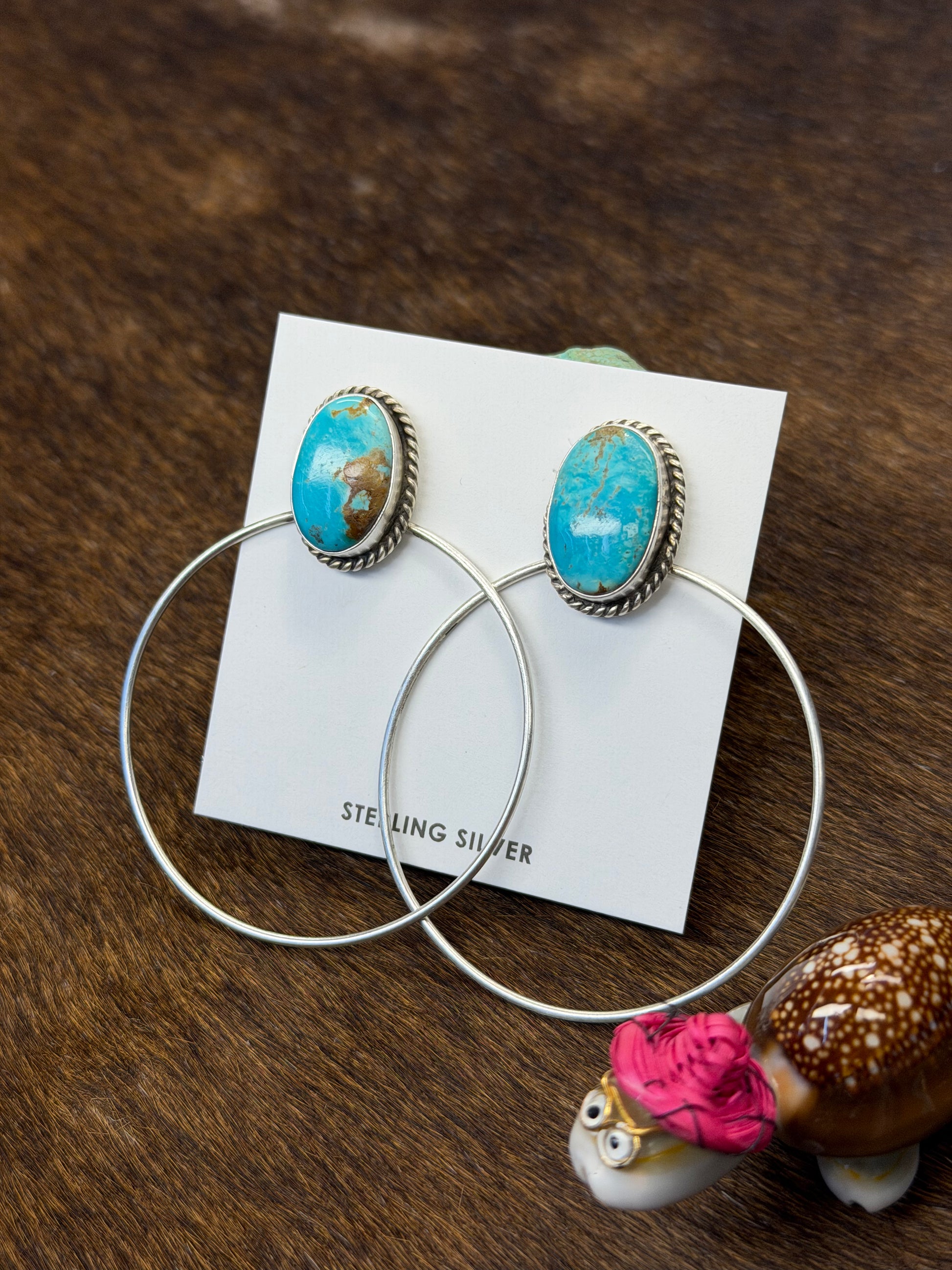 Kingman Turquoise & Sterling Silver Dangle Hoop Earrings