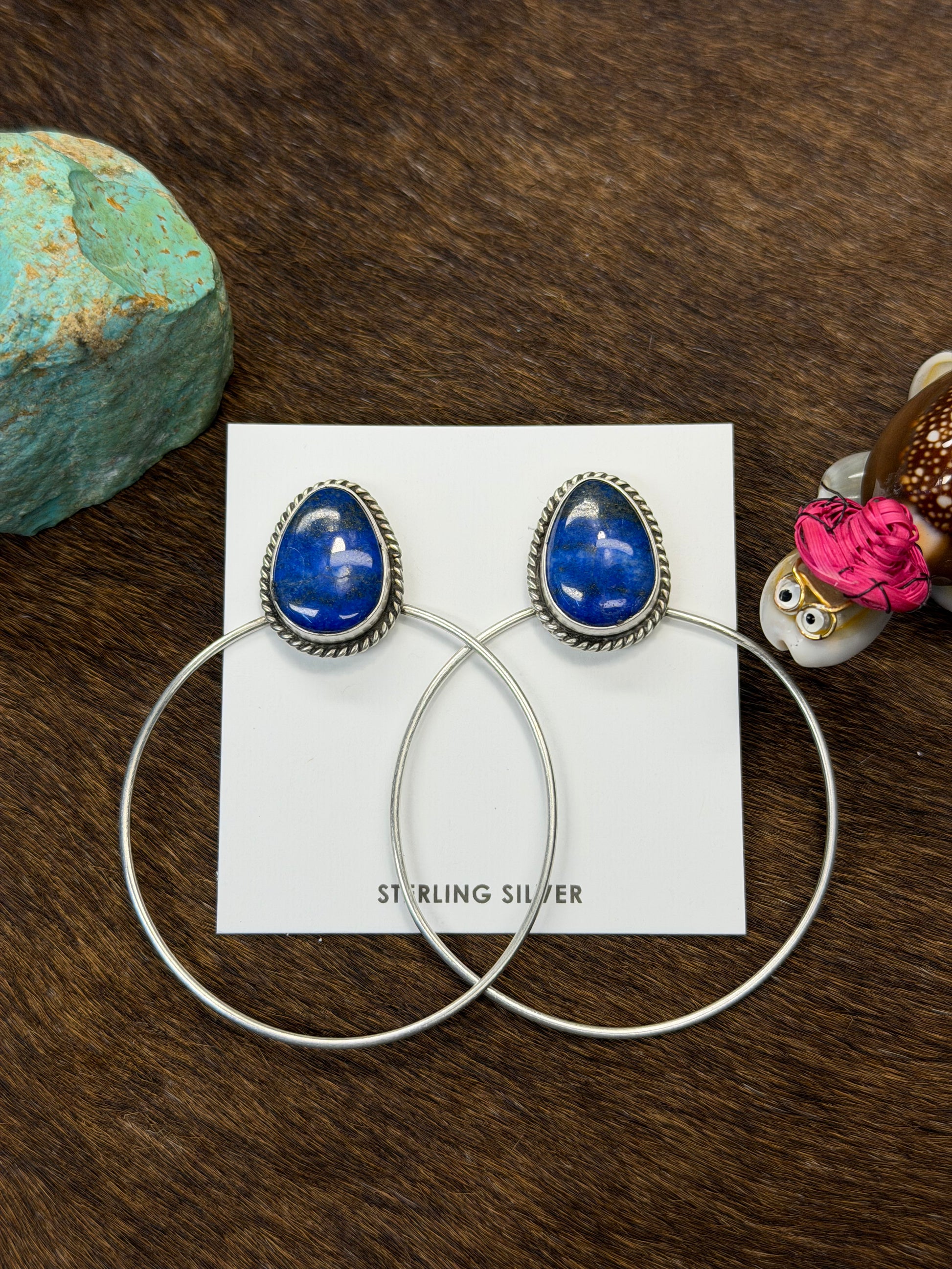 Lapis & Sterling Silver Dangle Hoop Earrings