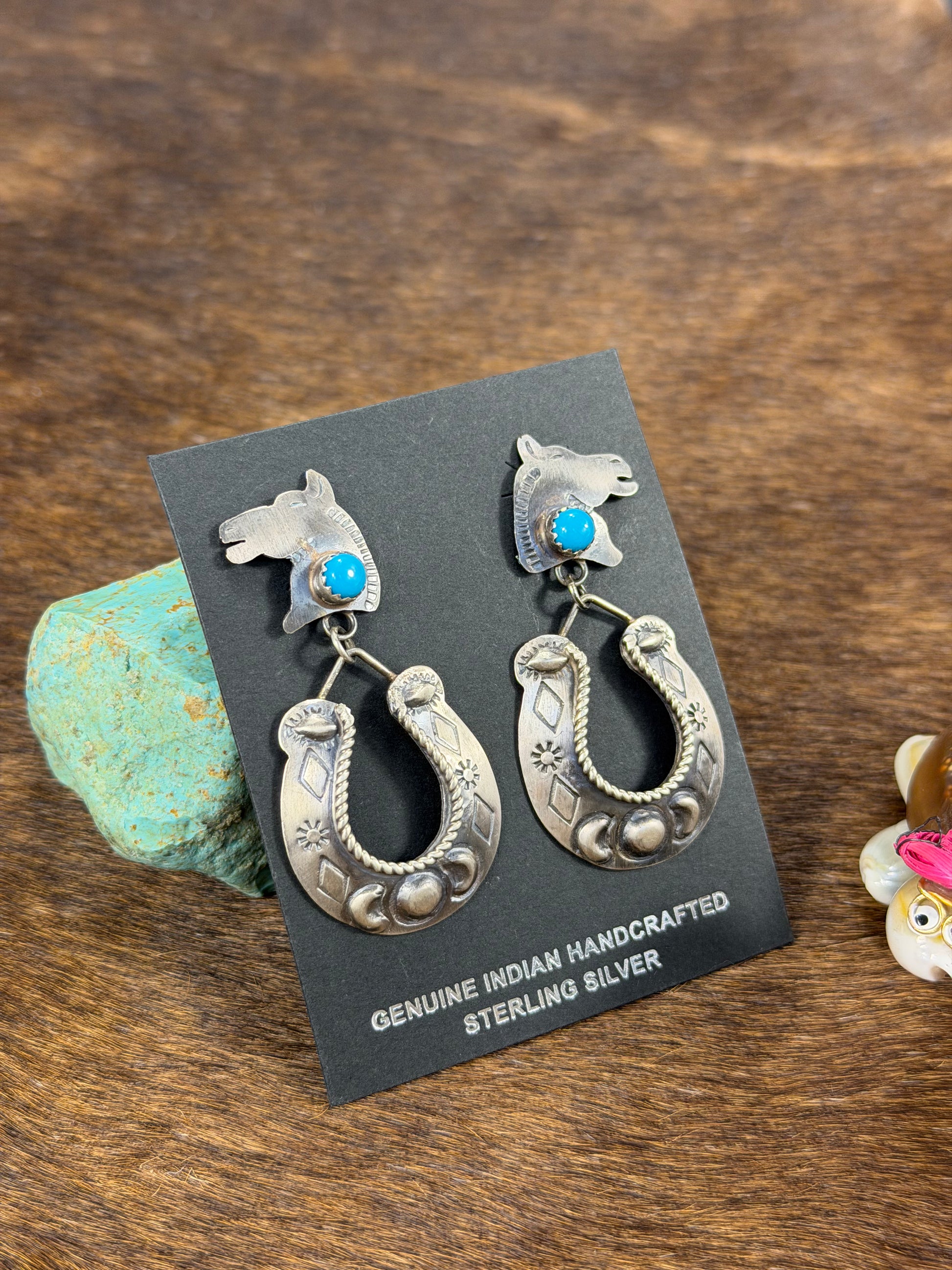 Sterling Sliver & Kingman Turquoise Horseshoe Earring